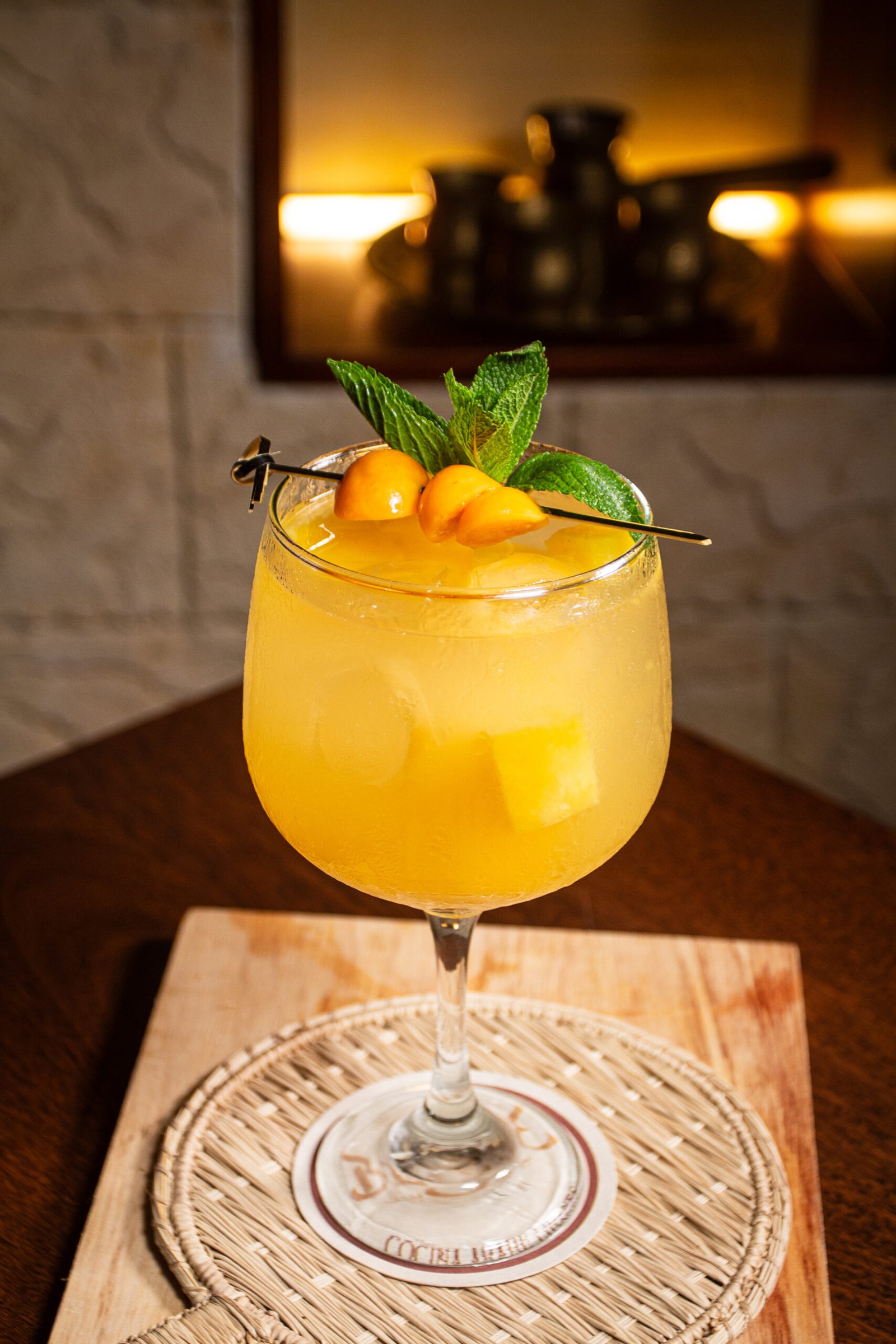 La intensa y exótica gulupa se equilibra con la acidez vibrante del limón. Esta mezcla frutal se eleva con el toque picante y refrescante de la gaseosa de jengibre, creando una bebida con carácter, perfecta para encender los sentidos