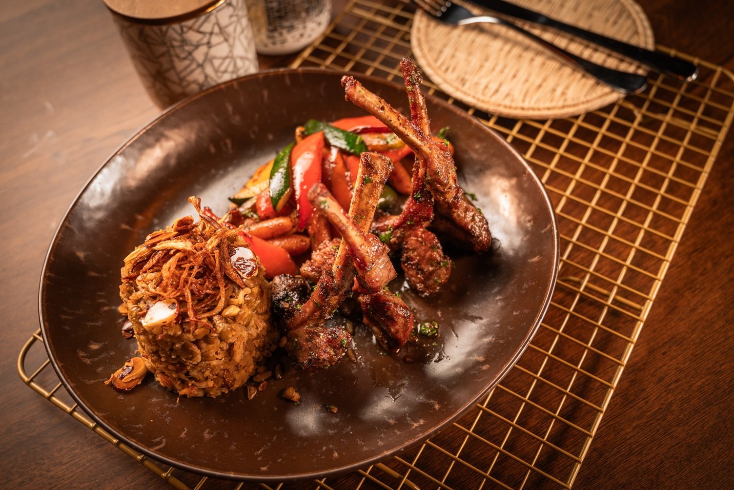 Chuletas de cordero marinadas y asadas en nuestro horno artesanal para darle un sabor diferente y muy original, servidas con arroz de lenteja/cabello de ángel o cascos de papas. Con un sabor Intensamente jugoso.
