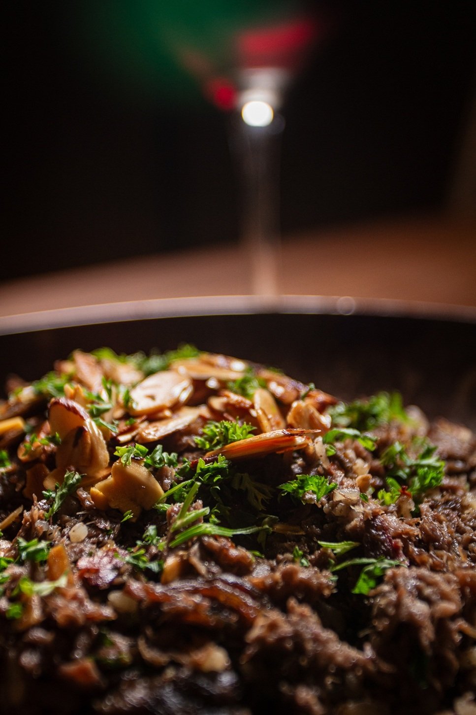 Cordero marinado cocido lentamente por varias horas en nuestro horno artesanal, acompañado de arroz especiado con carne molida. Tierno y profundo y con un sabor inigualable.